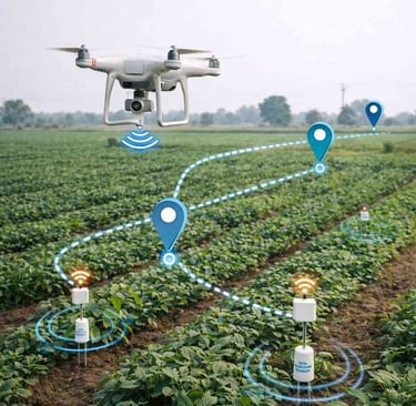 भाग 1 – धरातलीय सेंसर उपकरण (यदि भूमि समतल है, तो प्रति एकड़ 4–6 उपकरण)